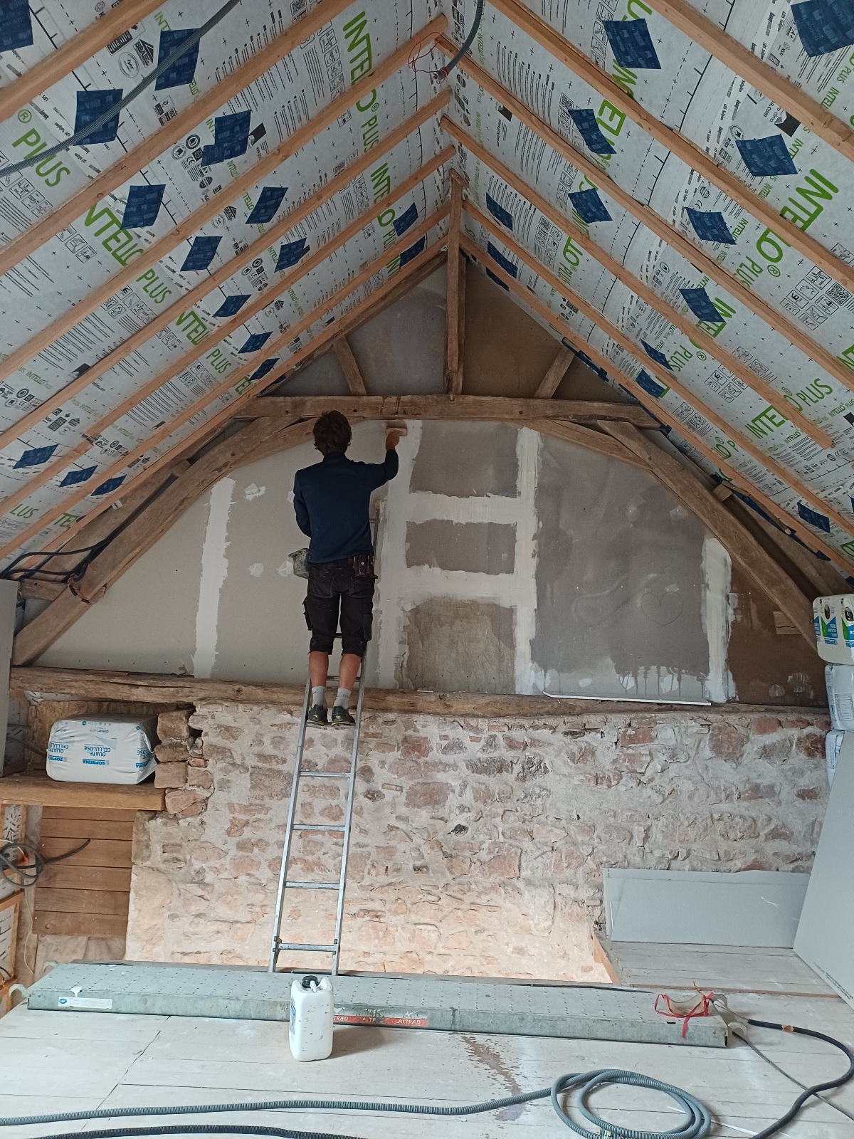 Après les chevrons, vient le tour de la volige et du pare-pluie